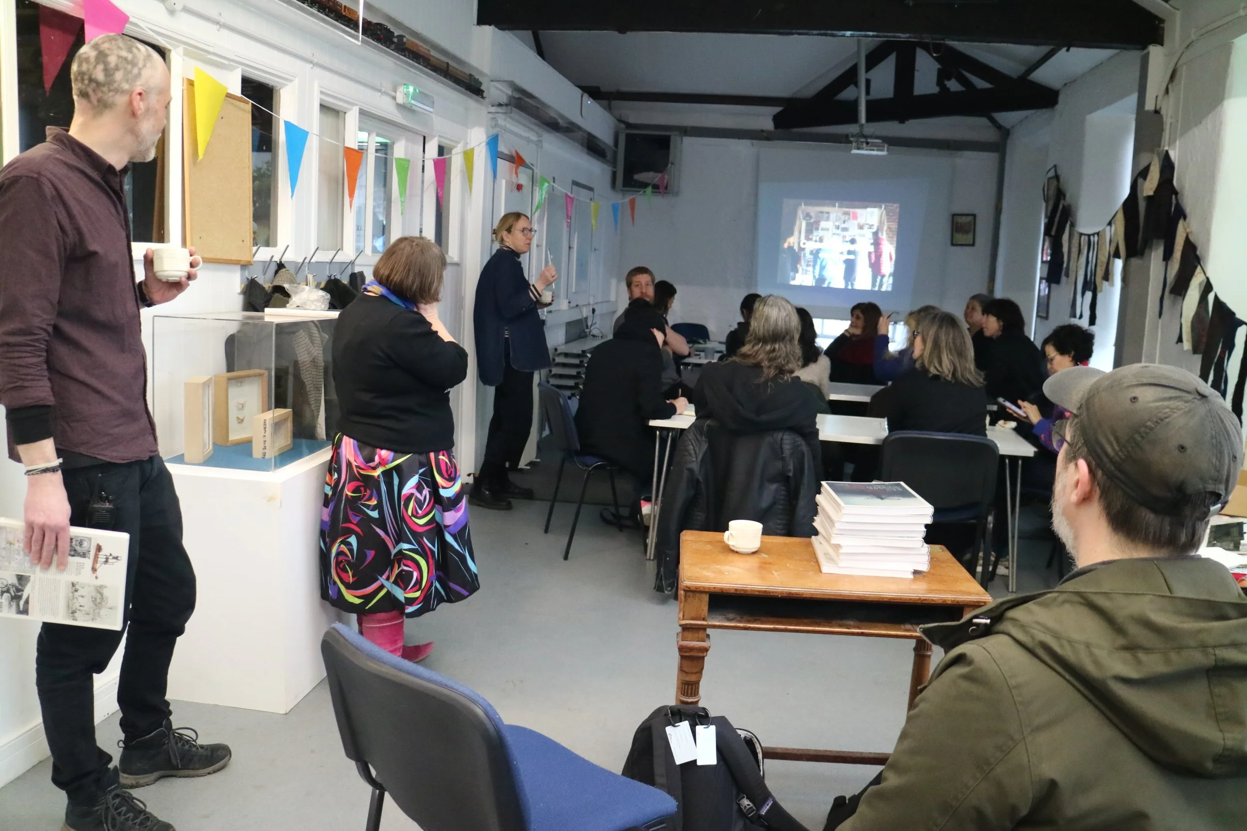 Woensdag en Donderdag gingen door in Leeds Industrial Museum waar we in de watten werden gelegd door Chris Sharp, de curator van het museum, en zijn team. Claire Wellesley-Smith startte de dag met de lezing Connected Threads over co-creatie met gemeenschappen in postindustriële plaatsen. Samen met de deelnemers verkende ze mogelijkheden en uitdagingen van textielerfgoed voor het werken met achtergestelde gemeenschappen.